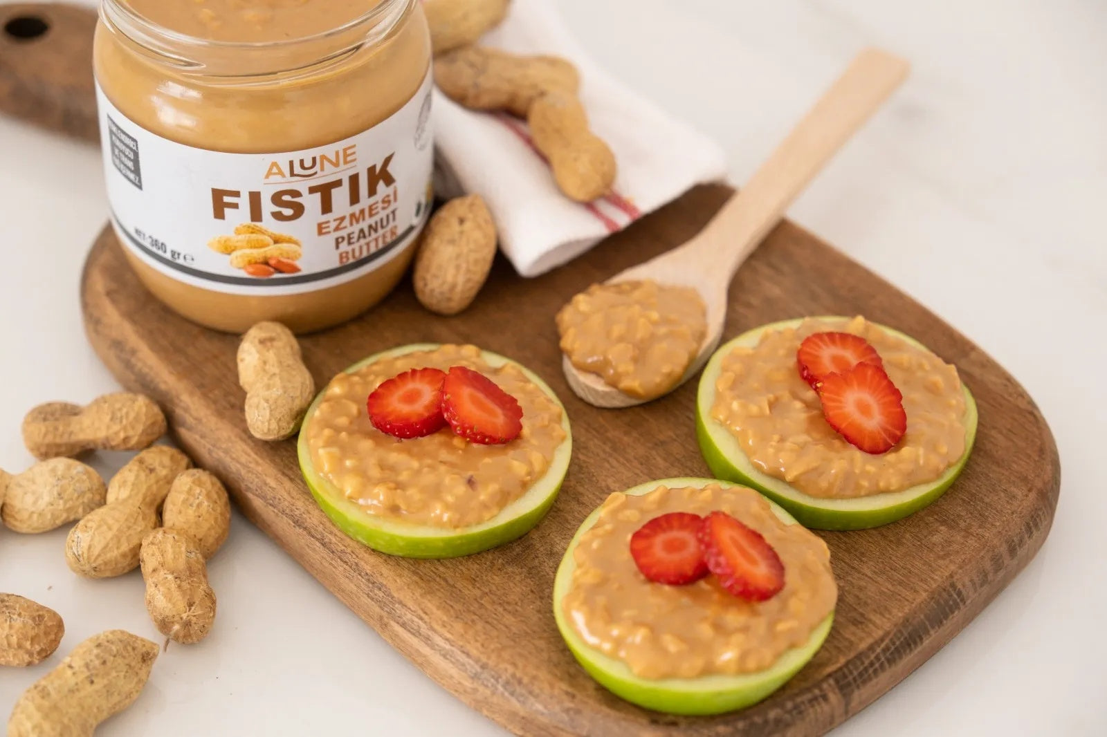 Alune Erdnusscreme wird aus hochwertigen Osmaniye-Erdnüssen hergestellt, die für ihren hohen Nährwert und ihren besonders ausgewogenen Fettgehalt bekannt sind. Es handelt sich um ein „geografisch geschütztes Produkt“, das direkt in Osmaniye – der Region mit der größten Erdnussproduktion – verarbeitet wird.